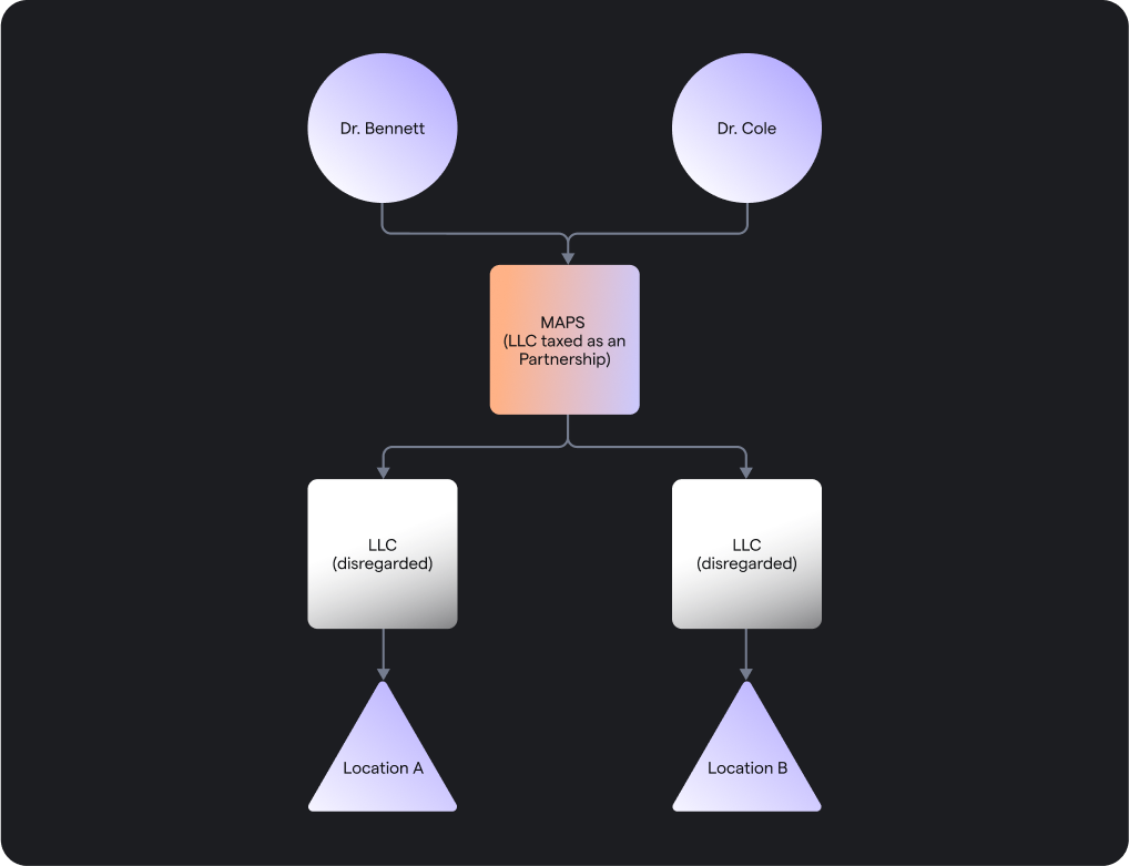 The proposed solution: shift Horizon from its current S-Corp setup to a partnership model with disregarded LLCs for each practice location. This structure offered: